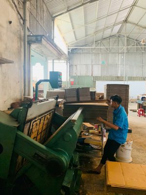 Tiếp theo là bế khuôn (die-cutting) để tạo hình theo kiểu dáng thùng: thùng thường, thùng nắp chồm, thùng âm dương, v.v.