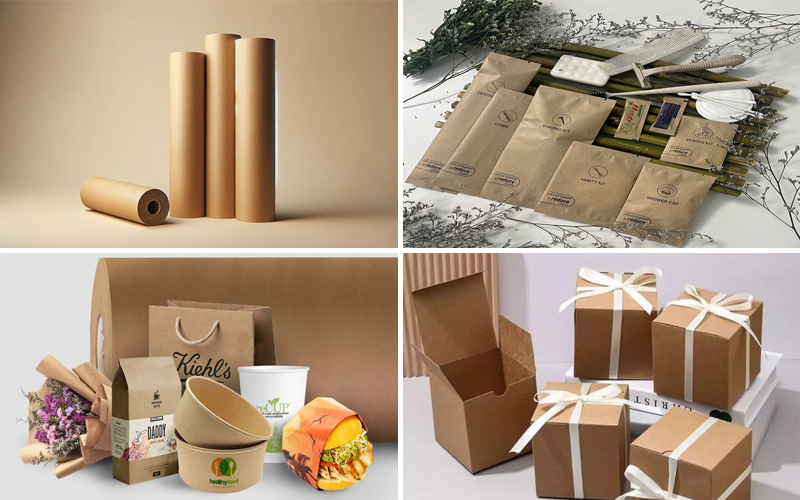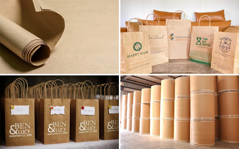 • Màu sắc: Giấy Kraft có màu nâu vàng tự nhiên, ngoài ra còn có các loại trắng, đen, hoặc in màu theo yêu cầu.